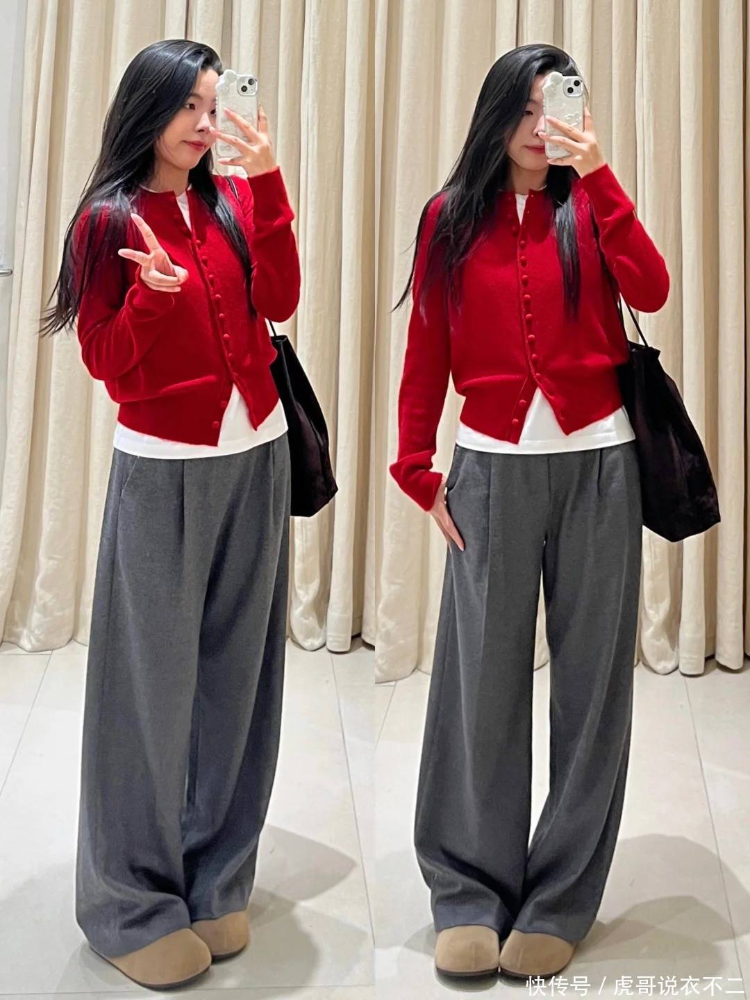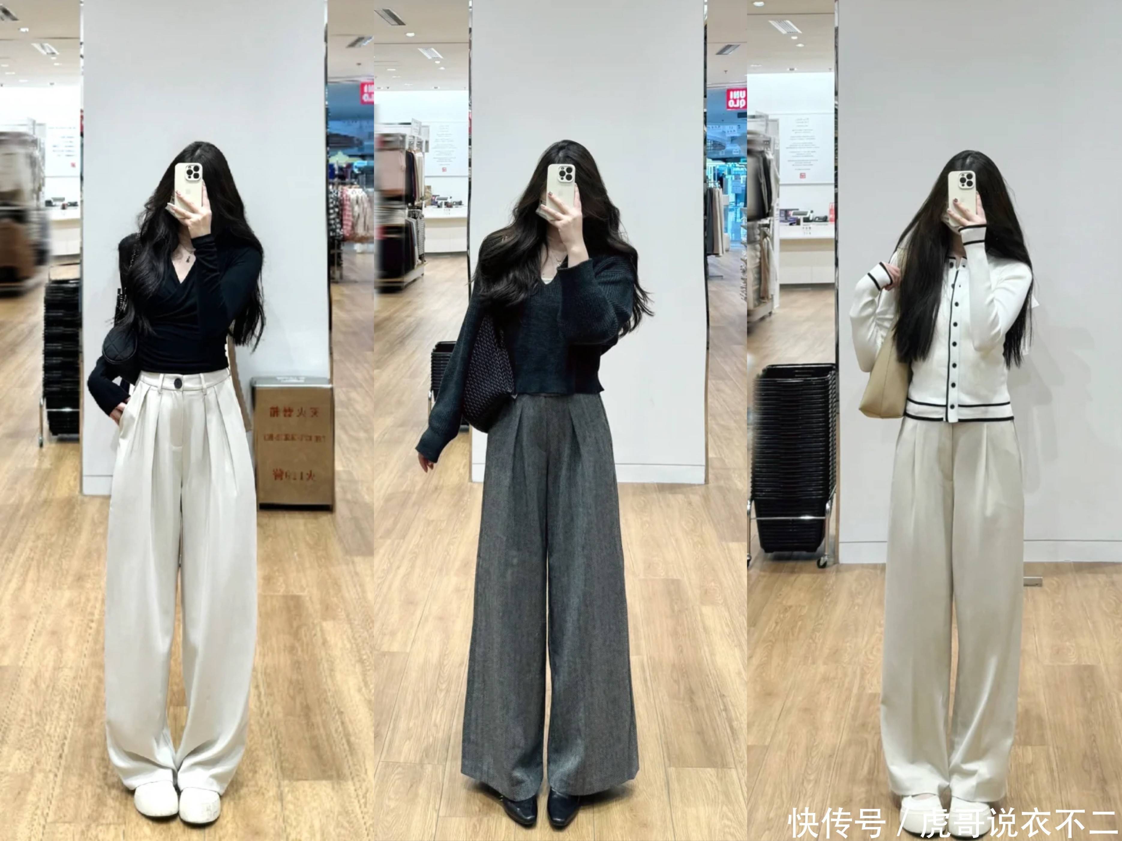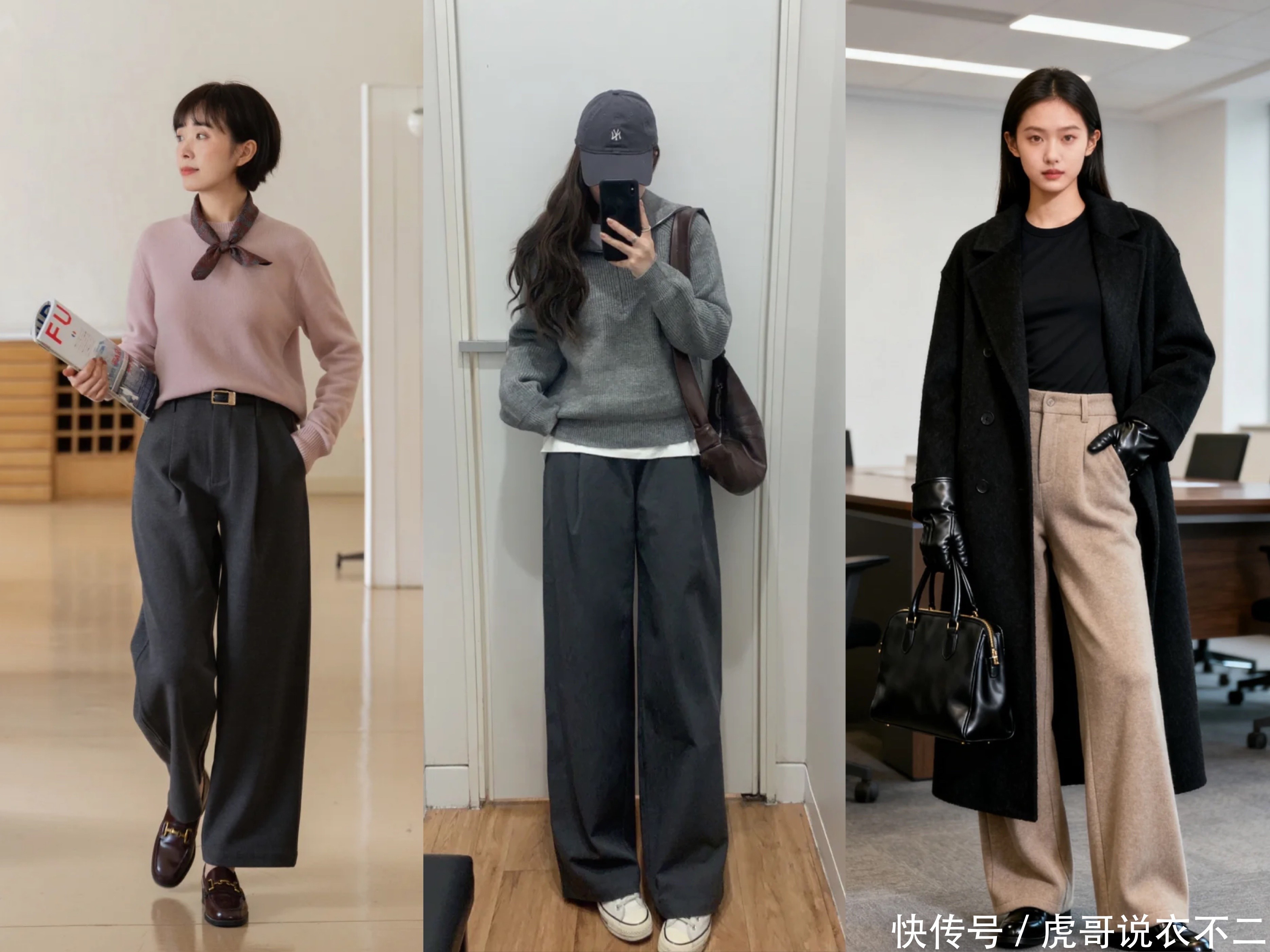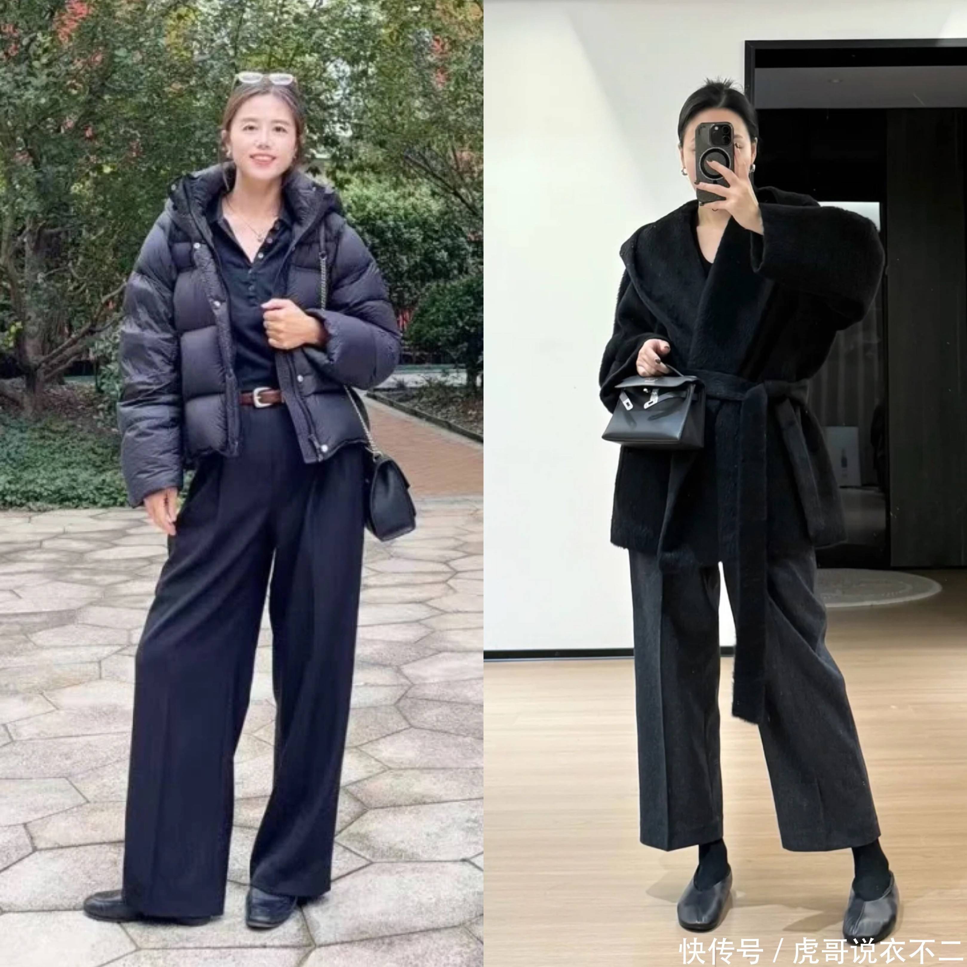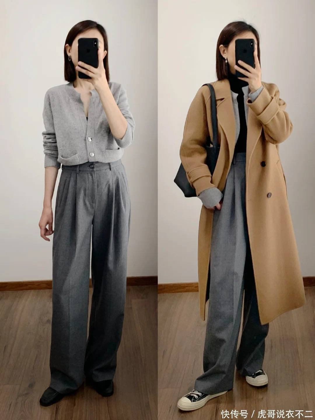首先,西裤作为下装,尤其是在冬季,基础色更好驾驭,比如黑白灰、卡其色、驼色等等,而西裤的款式也有很多,比如非常受欢迎的阔腿裤版型,当然,可以根据身材去选择烟管裤、直筒裤、九分裤等,最后就是细节上的设计,比如腰部带有褶皱设计的款式更遮肉显瘦。