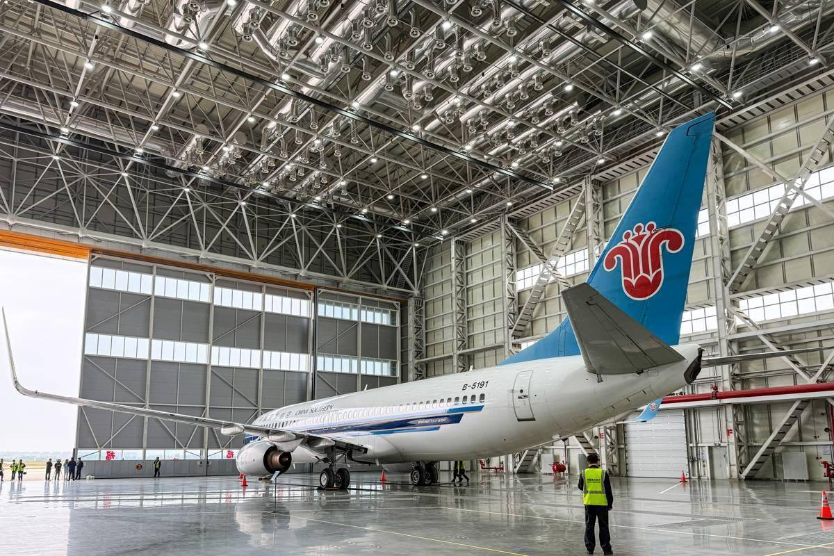 4月15日,南航湖北喷漆机库在天河机场建成投用,图为待喷漆飞机。(湖北日报全媒记者 倪娜 摄)