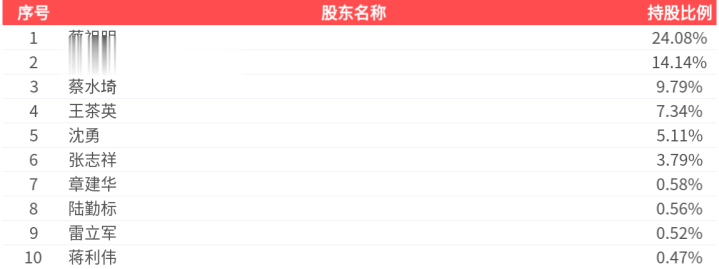 公司股东户数为1.10万户,前十大股东持股数量为8282.11万股,占总股本比例为66.37%,前十大股东持股情况如下: