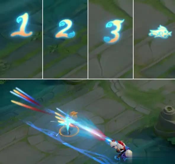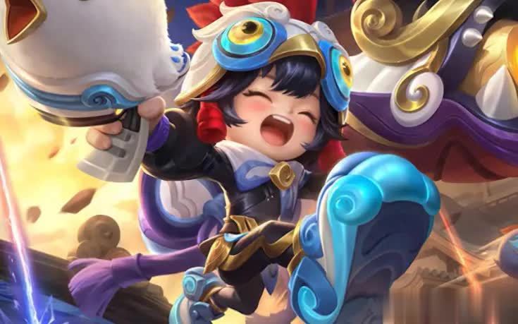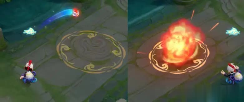 技能方面,这款皮肤给人的第一印象便是“超越勇者级别”。被动层数、扫射特效、技能换色均进行了全新绘制,特别是一技能丢出小鸡后的爆炸效果,地面纹理与道具设定都极具新意。它所欠缺的并非特效质量,而是史诗皮肤才具备的语音和出场动画。由此可见,称其为“被错分到勇者档位”的佳作,并不夸张。