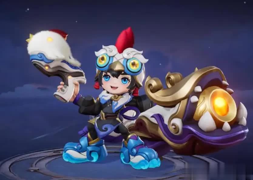 整体色调延续鲁班经典的蓝白体系,搭配金色与红色点缀,既保留了电玩小子的熟悉感,又增添了节日的喜庆氛围。最值得称赞的,当属造型设计:小鸡头盔、毛茸茸的小鸡手炮以及背后的“蛋形背包”,将“卤蛋”这一戏称变成了官方认证,可爱而不腻人。