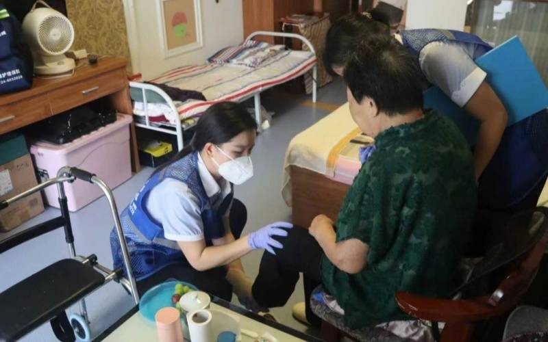 养老服务公司的签约护理员护理老人。