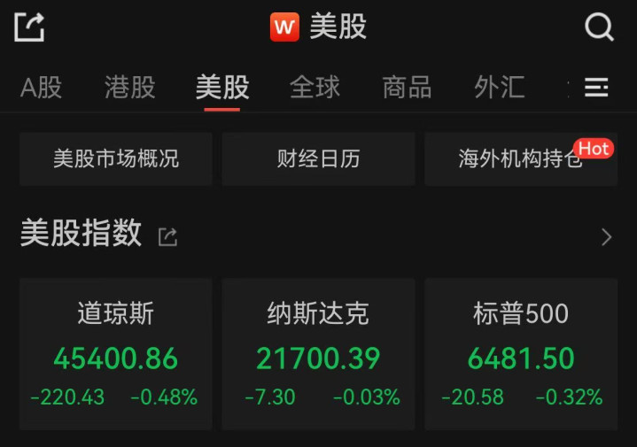 截至收盘,道指跌0.48%报45400.86点,标普500指数跌0.32%报6481.5点,纳指跌0.03%报21700.39点。本周,道指跌0.32%,标普500指数涨0.33%,纳指涨1.14%。