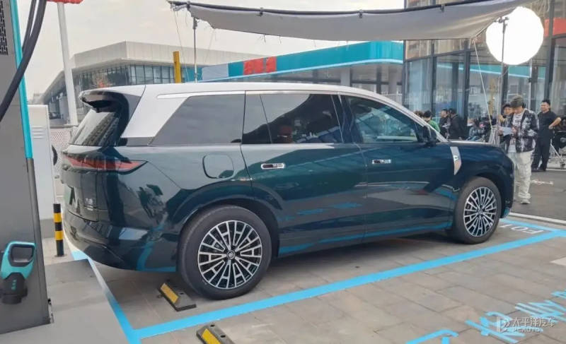侧面造型彰显全尺寸SUV气度,采用双色车身设计,配隐藏式门把手和大尺寸轮毂。D柱采用微悬浮处理,加入镀铬装饰,精致感十足。
