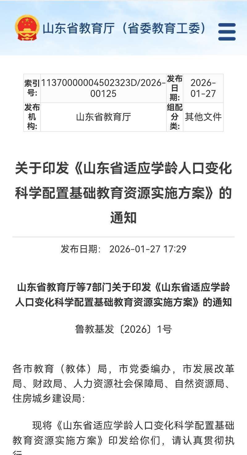 《方案》要求,省市县三级教育行政部门联合发改、公安、卫健、统计等部门建立学龄人口变动分析研判制度,分城乡、学段、区域绘制2026—2035年学龄人口变化趋势线,并修订学校布局规划图,同步调整学校布局专项规划,建立“十五五”学校建设项目库。每年年底前,动态调整学位保障方案,并报山东省教育厅备案。