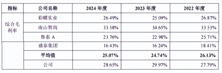 报告期各期,福恩股份综合毛利率分别为27.79%、29.97%和28.65%。公司毛利率略高于同行业可比上市公司毛利率平均值26.13%、24.74%和25.07%。