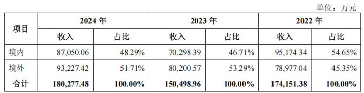 2022年-2024年,福恩股份境外收入分别为7.898亿元、8.02亿元和9.323亿元,占主营业务收入的比例分别为45.35%、53.29%和51.71%。公司境外销售主要分布在孟加拉、越南和印尼等国家和地区。公司境外收入以美元结算且占比较高。报告期各期,公司财务费用中汇兑损益分别为-1,764.43万元、-606.82万元和-511.80万元。
