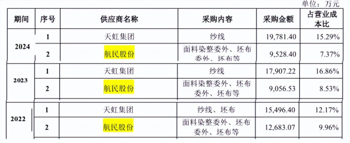 福恩股份的招股书显示,浙江航民股份有限公司为其报告期第二大供应商,向公司采购了 12,683.07万元、9,056.53万元和9,528.40万元。