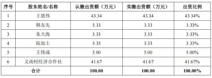 2000年12月5日,福恩有限召开股东会,审议同意义南村经济合作社转让其所持公司41.67万元出资额给王恩伟,并退出福恩有限。2023年9月,福恩有限整体变更为股份有限公司。